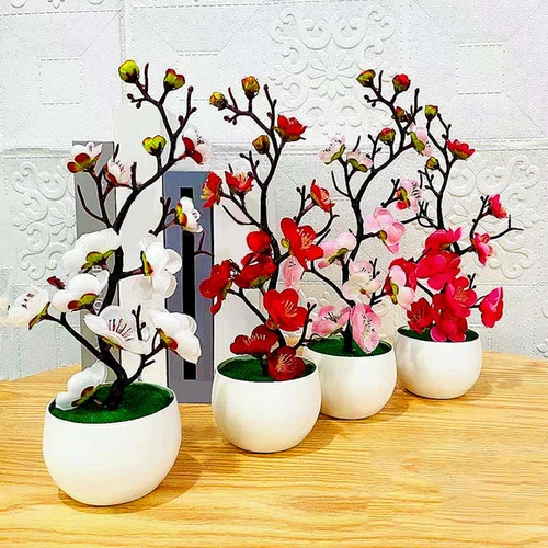 Artificial Plum Blossom Bonsai in Pot for Apartment Bedroom or Study Room