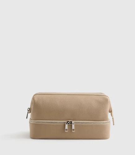 NWT QUINCE MEN'S ITALIAN LEATHER DUAL COMPARTMENT TOILETRY BAG TAUPE MSRP $70