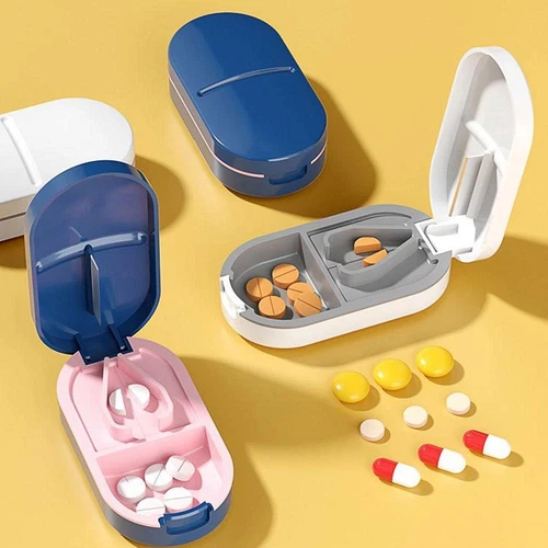 Pill Cutter Medicine Tablet Holder Safe Splitter Storage Compartment Box 1P B8U9