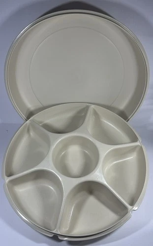Vintage TUPPERWARE 1666-1 Divided Veggie Fruit and Dip Tray Beige 7 Compartment