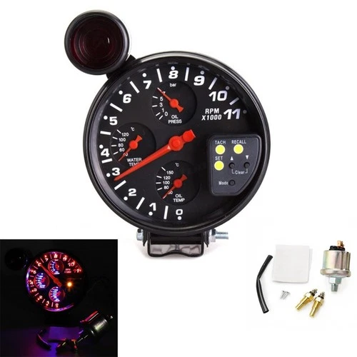 12V Car Tachometer 4 in 1 Gauge with Oil Pressure Water Temperature Sensors