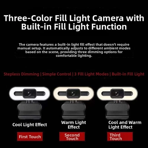 USB 4K Webcam 60fps Autofocus Built-in Fill Light Compact 12x6x3cm Black