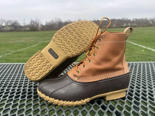LL Bean Mens 8" Duck Bean Boots Sz 10 W Unlined Leather Brown Waterproof USA