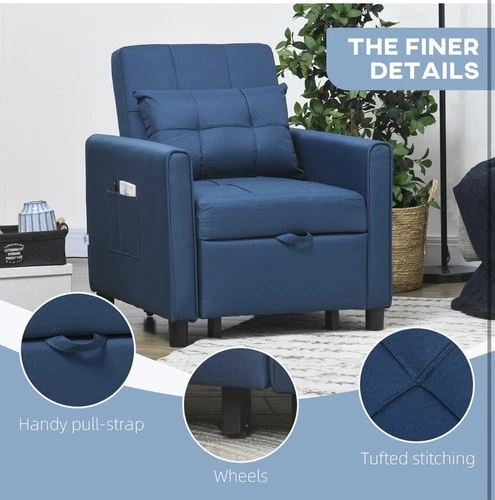 3-in-1 Single Sofa Bed with Adjustable Backrest, Convertible Sleeper Chair Bed
