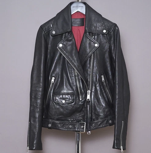 All Saints Dren Womens Leather Jacket UK8 Black Biker Bomber Celebrity US4 EU36