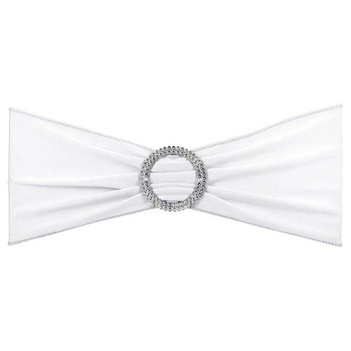 10Pcs 14"x5" Stretch Chair Sashes Bows Chair Bands Sash with Buckle White