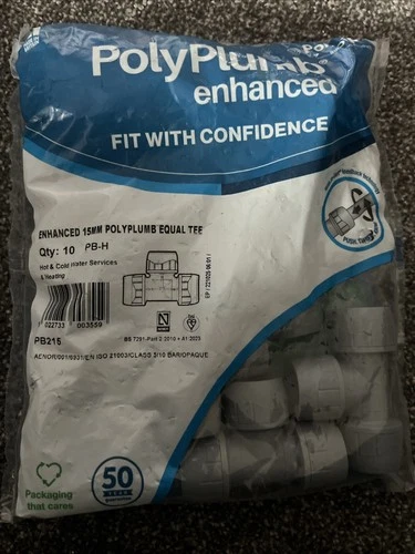 POLYPLUMB ENHANCED PLASTIC PUSH-FIT EQUAL TEES 15MM 10 PACK -PB215
