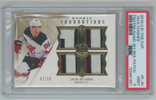2019-20 The Cup Rookie Foundations Quad Patches Jack Hughes RC 07/10 PSA 9 (CF)