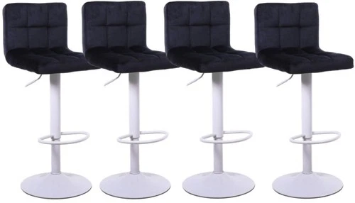 4 X Black Velvet Bar Stools Breakfast Chairs Swivel Barstools, WHITE Metalwork
