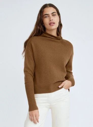 Wilfred Cyprie Sweater 100% Cashmere XS Brown Soft Knit Mock Neck Minimal Chic