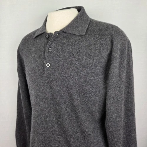 Giorgiolini 100% Cashmere Sweater Men's L Charcoal Grey Italy Preppy Old Money