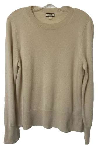 J Crew 100% Cashmere Sweater Womens M Cream Pullover Preppy Comfort Crew Neck