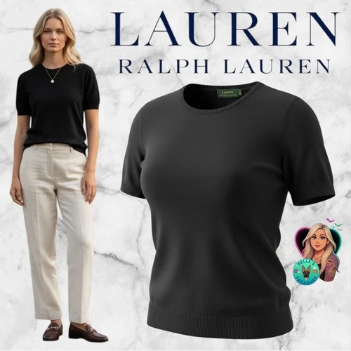 Ralph Lauren LRL Black 100% Cashmere Short Sleeve Crew Neck Sweater Ribbed Large