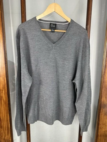 Jos. A. Bank Traveler Gray 100% Merino Wool V Neck Sweater Men XXL 2XL Academia