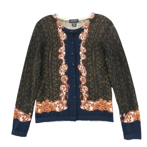 LORD & TAYLOR 100% Extra Fine Merino Wool Sweater Cardigan Size MEDIUM