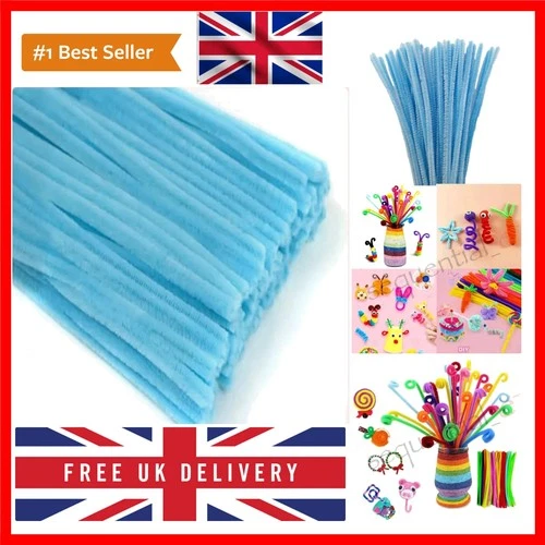 100 Baby Blue Pipe Cleaners for Craft 30cm x 6mm, Arts & Crafts for Kids, Sch...