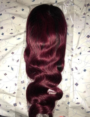 Mabel ombre red black burgundy long wavy European 100% human Hair lace front Wig