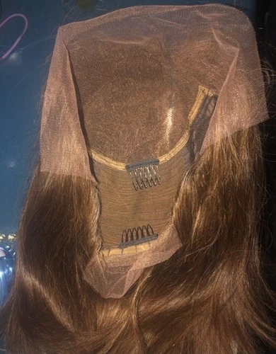 Amy coiffed warm brunette brown 4 straight long European 100% human Hair Wig