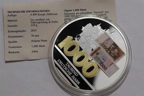 🧭 🇩🇪 GERMANY 2013 GOLD & SILVER PLATED MASSIVE MEDAL 70mm 1000 MARK B80...
