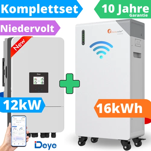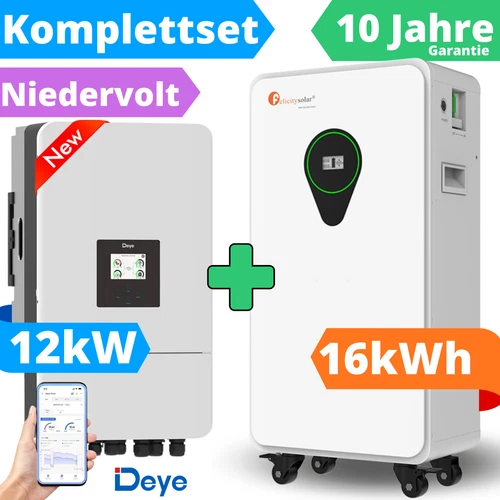 Complete Kit Deye 12kW Hybrid Inverter Felicity 16kWh Storage Battery Solar