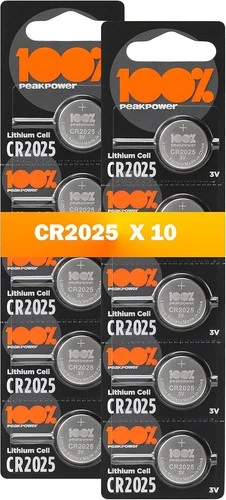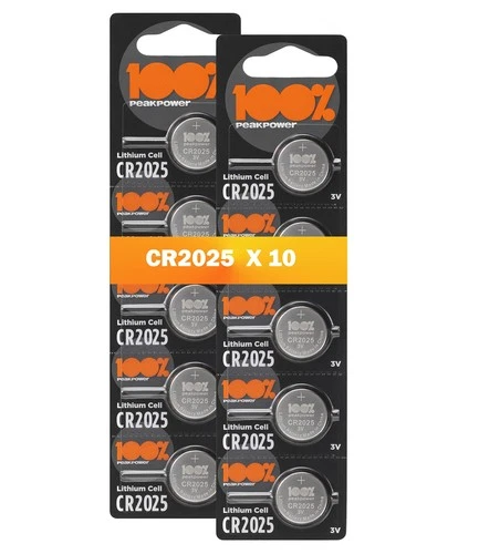 100% PeakPower CR2025 Battery – 10 PCS 3V Lithium for Car 10 Pack