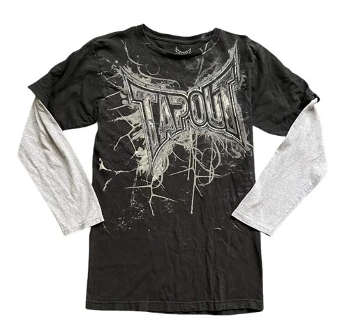 TapOut Y2K long-sleeved Fake Two Piece Gothic layered round neck graphic T-shirt