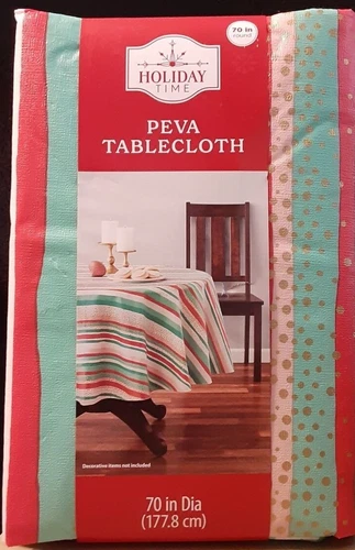 Holiday Time Peva Tablecloth Multicolored Ribbon Candy Stripes NEW (Choose Size)