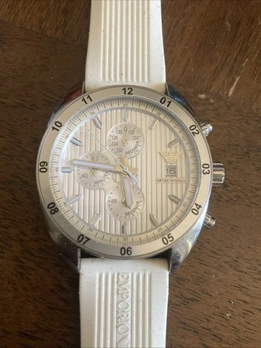 Emporio Armani Watch AR5929 Mens Silver 43mm Chronograph White Band