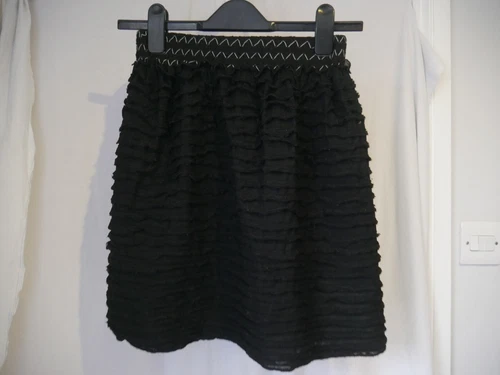Black Layered Skirt Frill Size S/M UK 8 10 12 Fengo Embroidered Party Modern