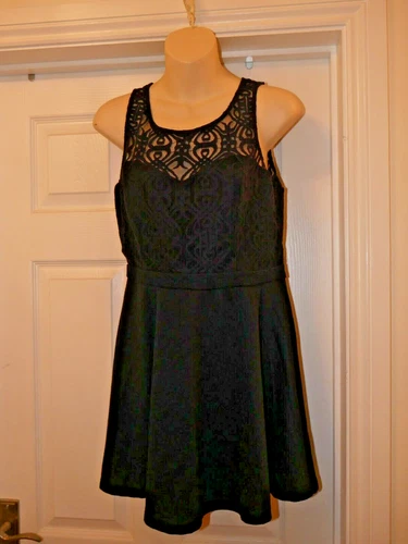 New Look Dress Size 12 Petite Navy Blue Lace Top Skater Style Party Classic
