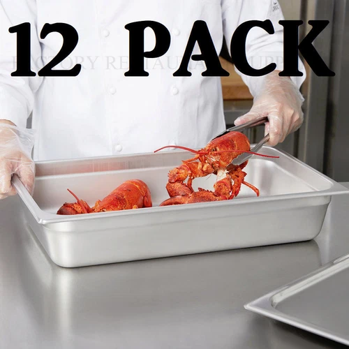 12 PACK Full Size 4" Deep Stainless Steel Steam Table Food Pan NSF Commercial