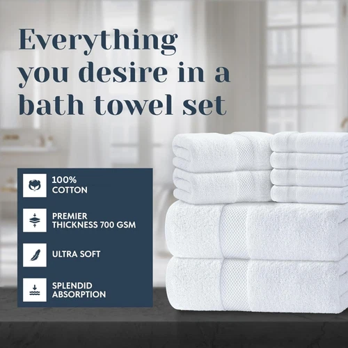 Bath Towels 6 Pack 26x52 White Cotton Towel Set Bath Pool Gym Towels Beach