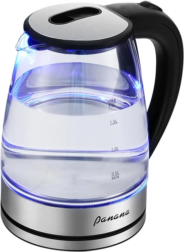 Electric Kettle, 1.8L Glass Kettles with Blue LED, 1200W, Built-In Mesh Filter,