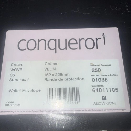Conqueror C5 Brilliant White Envelopes 120gsm Laid Plain Wallet Self Seal