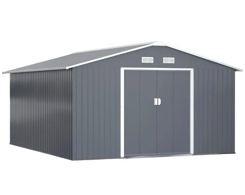 Outsunny 13 x 11ft Garden Shed Storage with Foundation Kit and Vents, Grey