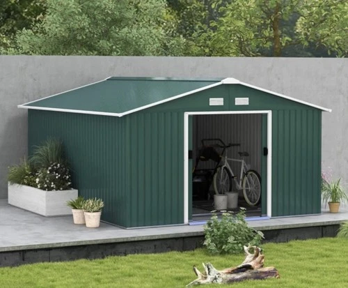 13 x 11 ft Metal Garden Storage Shed with Foundation Kit and Vents, Green