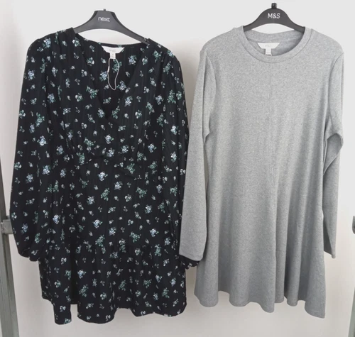 M&S Women's Black Floral Ruffle Mini Waisted Dress Size 14 & Brown Dress New