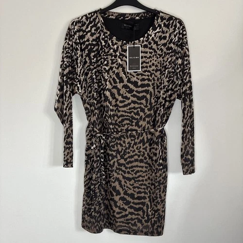 Religion Leopard Print Dress Tunic Sheer Sleeves Size L/14 New Silver Tone