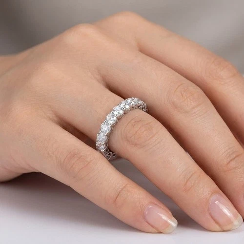 Eternity Wedding Ring 14K Gold Trellis Round 4.05 Carat Lab-Grown Diamond E VVS2