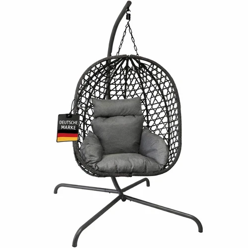 Hanging Chair Swing Set Anthracite Metal Frame Indoor Outdoor + Cushion