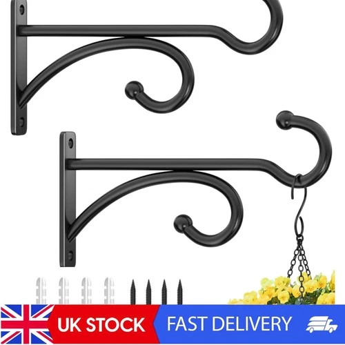 2 Pack 15cm Black Metal Plant Hanger Hooks Indoor Outdoor Wall Mount Brackets