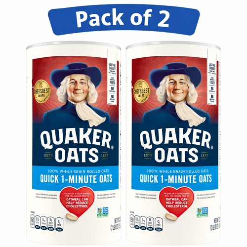 (2 Pack) Quaker Quick 1-Minute Oats 42 oz Canister 100% Whole Grain Oatmeal Bulk
