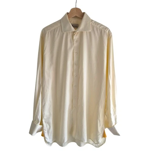 Aquascutum Shirt Two-Fold Cotton Button-Up Men's 16” Pale Yellow French Cuff