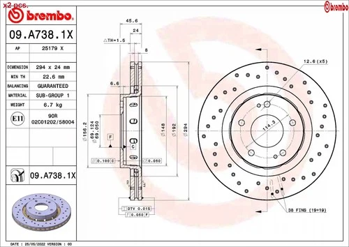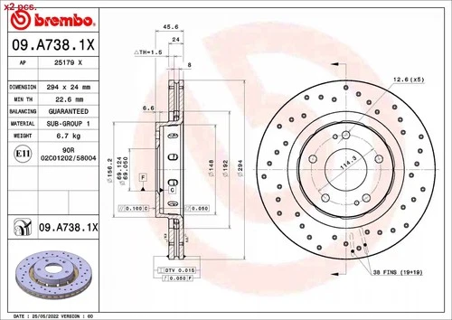 X2 PCS FRONT BRAKE DISC ROTORS SET L&R SIDES 09.A738.1X BREMBO I