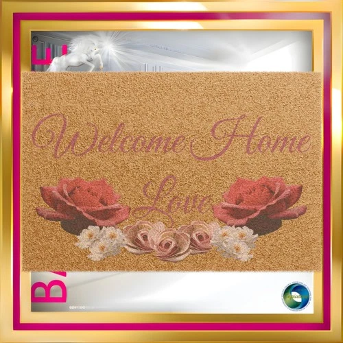 Doormat saying “Welcome Home Love” with flowers original one of a kind artwork