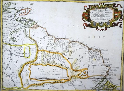 South America, El Dorado, Amazonia, Guyana, Suriname, Brazil... map Sanson, 1679