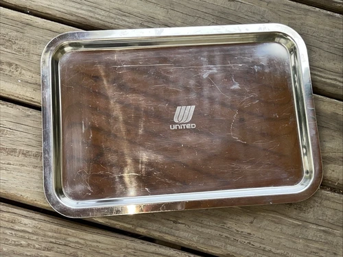 Vintage United Airlines Serving Tray 16x11 Heavy Stainless Steel UA TR032 Japan