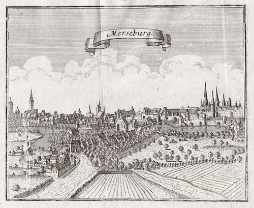 Merseburg Saale Saxony-Anhalt view copperplate Glafey engraving 1740