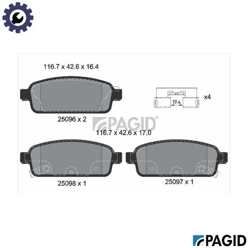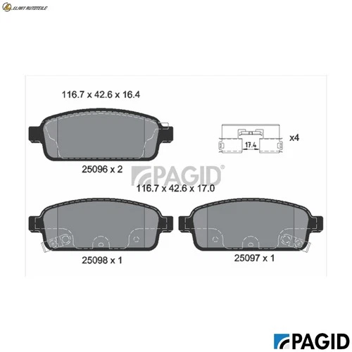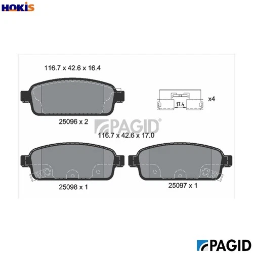 BRAKE PAD SET DISC BRAKE T1957N FOR VAUXHALL ZAFIRA/Mk/III CHEVROLET