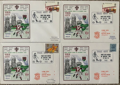 York City v Aston Villa 17th August 1974 Set Of 4 Dawn First Day Covers